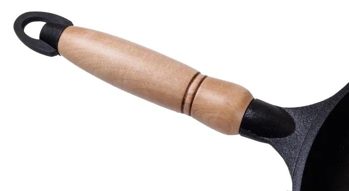 Незаменимая помощница на кухне - сковорода небольшого диаметра, идеально подходящая для жарки яиц, омлета или для приготовления зажарки. Сковорода Kukmara из литого алюминия имеет отличные теплораспределительные и теплоаккумулирующие свойства, и блюда в ней получаются сочными и ароматными, а деревянная ручка придает аутентичности.